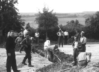 NAW-Arbeitseinsatz zur Wasserversorgung des Friedhofes im Juni 1967. Vorne links Bürgermeister Walter Weber