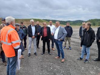 Im Gespräch auf dem Deponiegelände. Mit dabei Staatssekretär Marcus Malsch (in der Mitte zwischen Minister Kummer und Geschäftsführer Kachel)