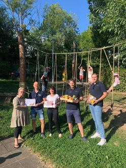 Mit 4 Vertretern besuchten uns Christian, Nadine, Robin und Manuel vom Kirmesverein Mihla und hatten eine ganz besondere Überraschung für uns im Gepäck. Wissend von unseren Neuerungen auf unserem Außengelände stimmte der Förderverein Mihlaer Kirmes e.V. einstimmig für eine Spende in Höhe von 500 € für unsere Kita, worüber wir uns natürlich außerordentlich freuen. Der naturnah angelegte Spielplatz wird von den Kindern sehr geliebt und von vielen Kindern täglich bei Wind und Wetter bespielt. Die verbauten Stämme und Hölzer müssen diesbezüglich auch regelmäßig gepflegt und ausgetauscht werden, was demzufolge mit hohen Kosten in Verbindung steht.