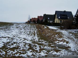 Dieser Graben wurde vor gut 30 Jahren angelegt und ist heute in einem sehr schlechten Zustand. Er soll erneuert werden und Abfluss zum neuen Kanal im Ihlefelder Weg und zum Rückhaltebecken an der Lauterbacher Mühle erhalten. Er ist allerdings auf Privateigentum liegend, daher verhandelt die Stadt mit den Eigentümern über eine Bauerlaubnis Foto Winter 2007.