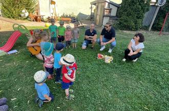 Der Vorstand des Kirmesvereins Mihla, vertreten von drei Mitgliedern, besuchte uns letzte Woche. Wir sangen gemeinsam Lieder und tanzten im Garten. Sie kamen aber nicht mit leeren Händen, sondern brachten uns neben vielen Leckereien auch eine üppige Geldspende, mit der wir eine neue Beschattung für unseren Sandkasten kaufen können.