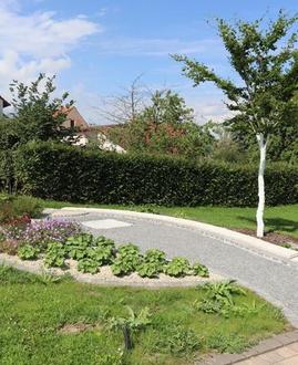 Blick auf die zuletzt gestaltete Grabanlage. Im vorderen Bereich werden die nächsten Urnengräber entstehen.
