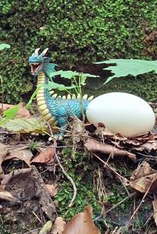 Nach etwa anderthalb Stunden erreichten die tapferen Wanderer den Ausgang der Schlucht. Und tatsächlich: Auf einem Felsvorsprung saß der kleine Feuerdrache Emil! Neben ihm lag ein geheimnisvolles Ei, was die Fantasie der Kinder sofort beflügelte.