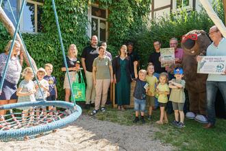 Im Rahmen der PEFC-Waldhauptstadt erhielten die "Cuxhofwichtel" in Mihla ein Hochbeet und das erste Saatgut. Die Initiatoren aus der Arbeitsgruppe "PEFC-Waldhauptstadt" und Staatssekretärin Rudolph freuten sich gemeinsam über diesen Anlass."