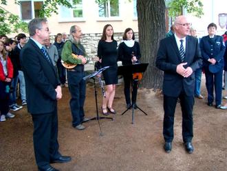 Deshalb wurde auch die Anwesenheit einer starken Schülerdelegation der Mihlaer "Thomas-Münzer" Schule sehr wohlwollend aufgenommen. Die Schüler hatten sich im Vorfeld mit der Thematik beschäftigt und eine Schülerin trug zur Veranstaltung ein jüdisches Gedicht vor, ein Schüler verlas ausdrucksstark die bekannten Daten aus der Biographie des Julius Rothschild.