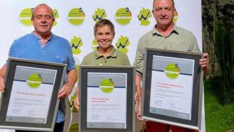 Ronny Schwanz (Creuzburg), Claudia Wilhelm (Naturpark „Eichsfeld-Hainich-Werratal“) und Stefan Sander (Vertreter für den ebenfalls zertifizierten Wanderweg Hanstein-Teufelskanzel) mit den entsprechenden Urkunden