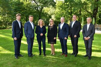 Von links nach rechts: VCD-Vorstand Matthias Kurzeck, Vorstandsvorsitzender der Deutsche Bahn AG Dr. Richard Lutz, Bundesministerin für Umwelt, Naturschutz, nukleare Sicherheit und Verbraucherschutz Steffi Lemke, Geschäftsstellenleiterin des Welterberegion Wartburg Hainich e.V. Anne-Katrin Ibarra Wong, stellertretender Leiter des Nationalpark Hainich Rüdiger Biehl, NABU-Präsident Jörg-Andreas Krüger und BUND-Vorsitzender Olaf Bandt