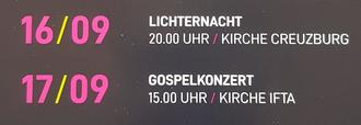 | 10.00 | Kirche Ifta, Erntedank mit dem Kindergarten |