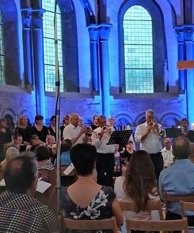 Acht Chöre aus dem Kirchenkreis Eisenach-Gerstungen fanden sich unter der Gesamtleitung des Kirchenmusikdirektors Christian Stötzner gemeinsam mit zahlreichen Instrumentalisten zusammen. Die Chöre, darunter der Eisenacher Bachchor, der Kirchenchor Marksuhl und die Concordia Kantorei des Kirchenkreises Eisenach unter den Leitungen ihrer jeweiligen Kantorinnen hatten sich zu vier großen Klangkörpern in der Creuzburger Nicolaikirche vereint, die an den vier Seiten der Kirche Aufstellung genommen hatten.