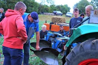 12 Traktoren der unterschiedlichsten Bauart und Alters machten sich dann an die Arbeit, unter den gestrengen Augen der Jury die Ackerfurche nach allen Regeln der Kunst zu ziehen. Die Vorschriften für ein erfolgreiches Ackern sind sehr genau. Die gerade gezogene Furche ist wichtig, aber auch die Art der gepflügten Schollen.
