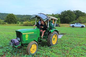 Die Jugend auf dem Traktor.