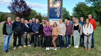 Das Schwimmbadteam 2025 vor dem neuen Uhrenbauwerk.
