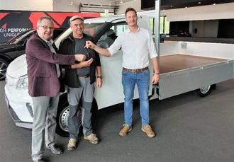 In einem Autohaus in Eisenach wurde ein neues Bauhoffahrzeug an Bürgermeister Rainer Lämmerhirt und Jens Nickol für den Bauhof in Mihla übergeben.