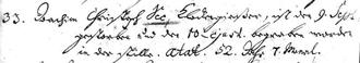 Kirchenbucheintrag Begräbnisse Joachim Christoph See