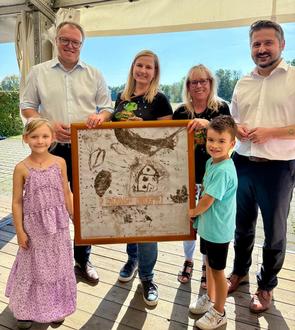 Alle Gewinner des Malwettbewerbs mit Ministerpräsident und Landrat