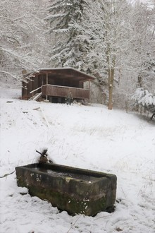 In mühevoller Arbeit verlegte dann der Förster eine Wasserleitung von der Quelle über die Zisterne und es gelang, dass der Brunnen vor dem Jagdhäuschen wieder Wasser lieferte, so wie sicher viele Jahrhunderte bereits. Sogar der alte Brunnentrog aus gehauenem Stein ist noch vorhanden und auch der aus einem Holzstamm geschnitzte Brunneneinlauf.