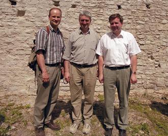 Frank Störzner, Harald Rockstuhl und Rainer Lämmerhirt im Hof der Burg Haineck.
