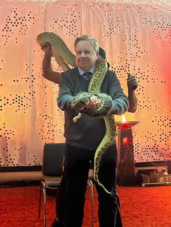 Einen unfreiwilligen und unvorbereiteten Auftritt mit zwei Riesenschlangen erlebte Bürgermeister Rainer Lämmerhirt
