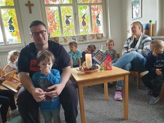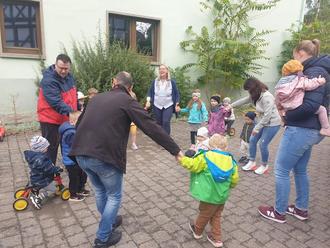 Am Mittwoch, den 4. Oktober 2023 war viel los im Kindergarten “St. Martin“! Es ging bereits am Morgen los. Unser neuer Erzieher-Kollege Marco Wagner ergänzt unser Team ab Oktober 2023 und startete in seinen ersten Tag in unserer Einrichtung. Er wurde von den Kolleginnen als auch den Kindern und natürlich Pfarrer Hoffmann mit großer Freude begrüßt.