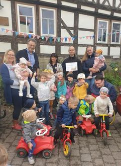 Der Kirmesverein Mihla hatte im August zu einem Dämmerschoppen auf den Propel eingeladen, bei dem die Einnahmen als Spende den Kindern in unserem Ort zugutekommen sollten. Und das Geld schien reichlich geflossen zu sein! Wir konnten mit großer Dankbarkeit einen Scheck in Höhe von 500 Euro sowie einen bunten Obstkorb entgegennehmen. Von dem Geld möchten wir uns neue Spielgeräte für unser Außengelände kaufen. Wir haben uns dafür mit einem gemeinsamen Hacki Tacki Tanz ganz herzlich bei den beiden Überbringern bedankt und freuen uns schon sehr auf die neuen Spielgeräte sowie auf die bevorstehende Kirmes in Mihla, die vom 13.10.- 22.10. stattfindet. Die Freude bei den Kindern ist groß, die schöne Kirmeszeit in der “Goldene Aue“, auf dem Anger und bei uns im Kindergarten zu feiern.