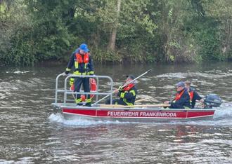 Zu dieser Übung stand die Wasserrettung auf der Werra im Mittelpunkt. Daher war das neue Einsatzboot der Kameraden aus Frankenroda gefragt, ebenso die Spezialtechnik hierfür der anderen Wehren.