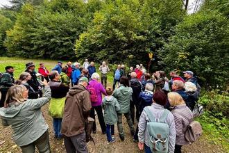Rüdiger Biehl (Bildmitte), Chef des Nationalparks „Hainich“, erläutert am Rand des Nationalparks dessen Besonderheiten.