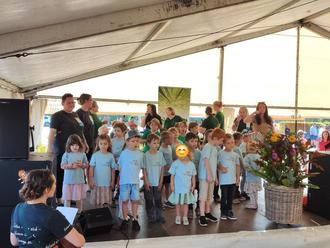 Ein echtes Highlight war das bunte Kinderprogramm, das gemeinsam von allen Kindergärten des Amtes Creuzburg gestaltet wurde - auch wenn es im Vorfeld keine gemeinsame Probe gab, lief beim Auftritt alles wie am Schnürchen: Das Waldlied „Sei ein Baum“ wurde mit Begeisterung vorgetragen und von vielen Eltern und Gästen mit Applaus gefeiert. Jeder Kindergarten hatte sich einen tollen Programmteil überlegt und mit den Kindern einstudiert. Von der Aufregung der wichtigsten Akteure, den Kindern war am Weltkindertag nichts zu merken. Vielen Dank an dieser Stelle besonders an unsere Eltern, die auch zum Gelingen beigetragen haben.