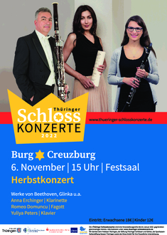 Am Sonntag, den 6. November, findet auf der Creuzburg ein Sonderkonzert der Reihe Thüringer Schlosskonzerte statt. Die wunderbare Tradition der beliebten Creuzburger Sonntagskonzerte wird damit erfolgreich fortgesetzt.