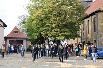 Der Kirmessamstag brachte am Morgen den Kirchgang. Das Wetter spielte gut mit, hatte es am frühen Morgen noch geregnet und gestürmt, klarte es kurz vor dem Kirchgang auf und die Herbstsonne schien.