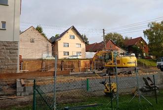 In Scherbda wächst der Rohbau am alten Schulhaus, dem zukünftigen Multifunktionshaus für die Dorfgemeinschaft, zügig empor.