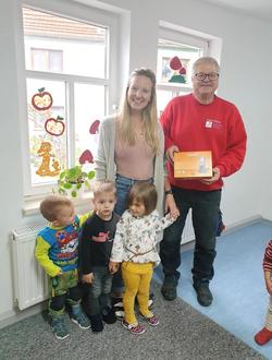 Das Team des Evangelischen Kindergartens bedankt sich für das neue Telefon und die jahrelange Zusammenarbeit!