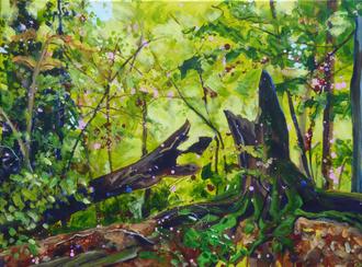 Die Malerin Kirsten Treis zeigt im Nationalparkzentrum Hainich farbenfrohe Bilder, die von Natur und Landschaft handeln. Sie lebt im Rheinland am Fuße des großen Waldschutzgebietes Kottenforst, so dass viele ihrer Spaziergänge dorthin führen. Seit mehreren Jahren entstehen unter ihren Pinseln vornehmlich Landschaftsimpressionen, Pflanzen, Tiere und menschliche Gäste aus Wald und Flur. Manche ihrer Funde könnten auch dem Hainich entstammen.