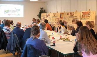 Rainer Lämmerhirt führte durch die Gebäude und erläuterte deren Geschichte. Schon beim Rundgang gab es spannende Diskussionen zu Möglichkeiten und Herangehensweise für eine Nutzung der Nebengebäude. Diese wurden dann im Bürgerhaus „Goldene Aue“ intensiv fortgesetzt. Dort informierten 15 Tafeln über die bisherigen Aktivitäten des Vereins.