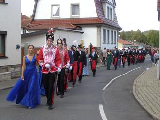 Hierzu waren auch die benachbarten Kirmesvereine aus der Region eingeladen worden und so gaben die Gäste gemeinsam mit den Mihlaer Paaren dem Umzug ein ausgesprochen festliches Gewand, das von vielen Mihlaern in den Straßen und an den Fenstern bewundert wurde.