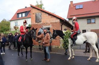 Letzte Station war in diesem Jahr der ehemalige Schlosshof. Dort wurde die Kirmesschar bereits von Ehrenortsteilbürgermeister Klaus Rödiger, Bürgermeister Rainer Lämmerhirt, Ortsteilbürgermeister Ronny Schwanz und dem Chef Landwirtschafts- GmbH Ifta, Karl (Karlo) Otto Walther empfangen.