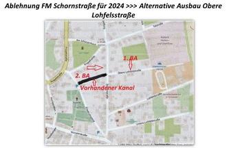 Vorteil sei, diese Maßnahme hätte nach dem Ausbau der Schornstraße durchgeführt werden müssen, kann aber vorgezogen werden, da der Kanal der oberen Lohfeldstraße ditrekt in den neuen Kanal in der Friedhofsgasse entwässert. Damit würde mit der Verschiebung der Baumaßnahmen kein Zeitversuch entstehen und ein ebenso dringendes Problem gelöst werden.