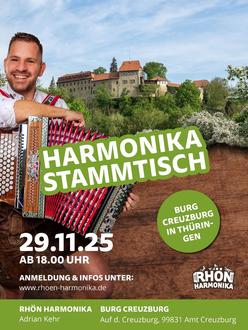 Nach der gelungenen Premiere im Frühjahr lädt Rhön Harmonika nun zum zweiten Stammtisch auf der Creuzburg ein.