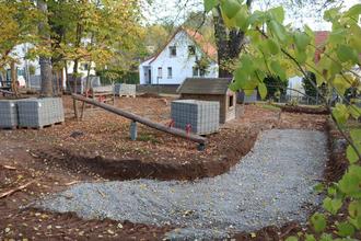 Neue Wege, Spielflächen und Geräte entstehen. Tatkräftige Unterstützung gibt es durch die Bauhofmitarbeiter von Creuzburg um Ronny Schwanz.