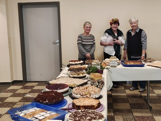 In der Mitte des Saales wurden drei lange Tischreihen für eine gemütliche Kaffeetafel vorbereitet. Im Foyer warteten rund 20 verschiedene Kuchen auf die Gäste, die sich bei Kaffee und Kuchen verwöhnen lassen konnten. Die Veranstaltung wurde feierlich mit einer kleinen Tanzvorführung der Tanzgruppe eröffnet, die das Publikum mit ihrem Können begeisterte.