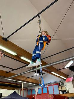 Geübt wurden an diesem Tag das Abseilen, Stiche und Bunde sowie die Rettung von Personen mittels Schleifkorbtrage und Spineboard. Genauso, wie es Berufsfeuerwehrmänner und -Frauen in ihren Diensten auch tun.