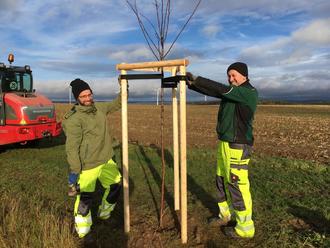 Anfang November war es dann soweit, die Baumschule „Pomona Baumschulen Inh. Ralf Lehmann“ lieferte die 80 bestellten Pflaumen-, Birnen-, Äpfel- und Kirschbäume an, sodass die Pflanzmaßnahme durch die Bauhofmitarbeiter zeitnah beginnen konnte.