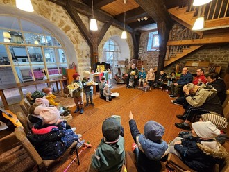 Zur schönen Tradition ist es mittlerweile geworden, dass wir uns zu diesem Anlass mit den Heimbewohnern vom DRK Pflegeheim in Mihla im Turmzimmer unserer Kirche treffen um gemeinsam die Geschichte zu erleben. Auch in diesem Jahr war es wieder soweit. Wir zogen mit unseren Laternen in die Kirche, begrüßten herzlich unsere Gäste, lauschten der Geschichte vom Heiligen Martin und sangen und tanzten zu unseren schönen Laternenliedern. Natürlich gab es auch wieder leckere Martinshörnchen, welche die Bäckerei Eichholz wieder sehr reichlich spendiert hatte. Wir teilten sie und ließen sie uns sehr gut schmecken.