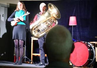 Christopher Gottwald, aus Lauterbach (Tuba) stammend, spielte den in eine Tuba verliebten Ehemann, seine Lebensgefährtin Barbara kümmerte sich um die dramatische und musikalische Begleitung.