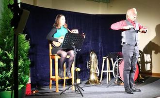 Ihre überzeugende mimische und rhetorische Darstellung überzeugte in jeder Phase des Programms. Auch zwei auf die Bühne geholte Zuschauerinnen gelang es unter fachlicher Anleitung das spezielle Instrument der Tuba zu spielen. Viel Beifall lohnte die exzellenten schauspielerischen Leistungen.