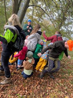 Auch in diesem Jahr fand unser Teamtag im Frühherbst statt. Während sich die Kolleginnen der Kinderkrippe in der Zukunftswerkstatt „Krippe“ mit Chancen, Herausforderungen und der Weiterentwicklung ihres täglichen Arbeitsfeldes auseinandersetzten, begaben sich die KollegInnen des Kindergartenhauses zusammen mit der Nationalparkführerin Sara Beck des Nationalpark Hainich und Ortsteilbürgermeister Ronny Schwanz auf Wanderschaft rund um Creuzburg. Zukünftig wollen wir uns noch mehr der Naturpädagogik öffnen und nahmen dies zum Anlass auch uns als Team hierzu fitter zu machen.