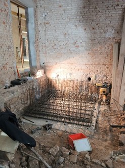 In der Praetoriusschule wird an der Bodenplatte für den Aufzugsschacht gearbeitet.