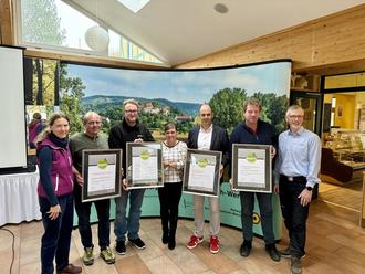 Heyerode, 10. November - Im Landgasthof „Alter Bahnhof“ in Heyerode fand am 10. November die feierliche Auszeichnung von vier Wanderwegen im Naturpark Eichsfeld-Hainich-Werratal statt, die im Sommer durch den Deutschen Wanderverband erfolgreich geprüft wurden. Die TOP-Wanderwege Hanstein-Teufelskanzel und Scharfenstein aus dem Eichsfeld sowie die TOP-Wanderwege Creuzburg und Normannstein aus dem Werratal überzeugten erneut mit herausragender Wanderqualität und dürfen für weitere drei Jahre das renommierte Zertifikat „Qualitätsweg Wanderbares Deutschland“ tragen.