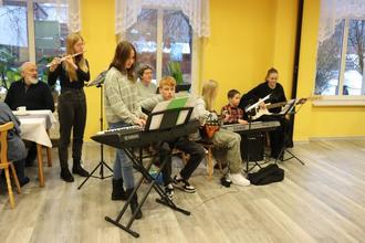 Die junge Band unter Leitung von Ricarda Kappauf musizierten und sangen für die Seniorinnen und Senioren aus Frankenroda und Ebenshausen Weihnachtslieder.