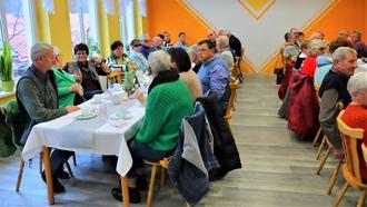 Das Bürgerhaus war gut besucht, da auch viele Ebenshäuser den Weg nach Frankenroda gefunden hatten. Vor der Eröffnung der reichlichen Kaffeetafel begrüßte Erika Helbig mit einer kleinen Ansprache alle Gäste. Die Begrüßung wurde dann gleich von Pfarrer Stephan fortgesetzt, der mit einem Gedicht aufwartete. Bürgermeister Rainer Lämmerhirt vom Amt Creuzburg bedankte sich bei allen fleißigen Helfern und wünschte, ebenso wie die Vorredner, eine friedliche und besinnliche Weihnachtszeit.
