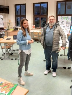 Berkas Bürgermeister Grimm im Gespräch mit einer der leitenden Lehrerinnen.